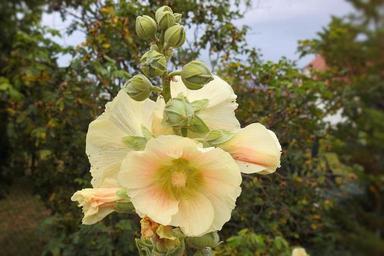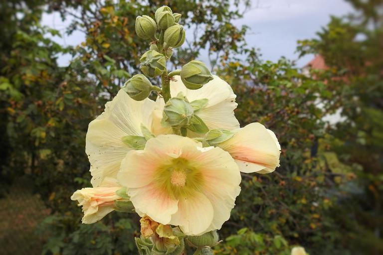 Keywords: mallow hollyhock flower stock rose yellow summer