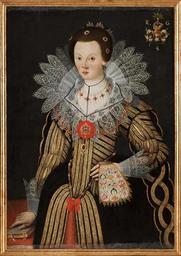 | Keywords: Målning. Porträtt, Katarina Gyllenstierna - Skoklosters slott - 87719.tif  Katarina Gyllenstierna plain text Knäbild fas höger Svart robe med guldgaloner Stuartkrage av spets och spetsmanschetter Halsband och hängsmycke av pärlor och guld Vänstra handen vilar på en bok i högra en broderad handske Till höger gyllenstiernska vapnet och initialerna K G S <br/>Förgylld profilerad ram listens bredd 30 mm Lapp Carin Gyllenstierna 1635 gift med riksrådet och fältmarskalken Herman Wrangel i hans andra gifte original caption Målning Porträtt Katarina Gyllenstierna<br/> Nyckelord Porträtt Kvinna Kraill von Bemeberg Barocken Krage Målning Klänning Föremålsbild 1600-tal Stormaktstiden Spets - 1610 1629 oil on canvas size mm 1140 810 SKO Carl Gustaf Wrangel sv place of origin original filename sm_dig6634 21992 inventory number SKO 700 87719 PD Madeleine Söder Madeleine Söder Georg Günther Kräill 17th-century oil portraits of standing women at three-quarter length 1610> 17th-century portrait paintings in Sweden 1610> 17th-century portraits with coat of arms 1610> Baroque paintings Lace collars in art 1610> Sweden 1611-1718 Media contributed by LSH unmatched creator Media contributed by LSH unmatched keyword Gyllenstierna family 17th-century women of Sweden Media contributed by LSH 2013-10 |