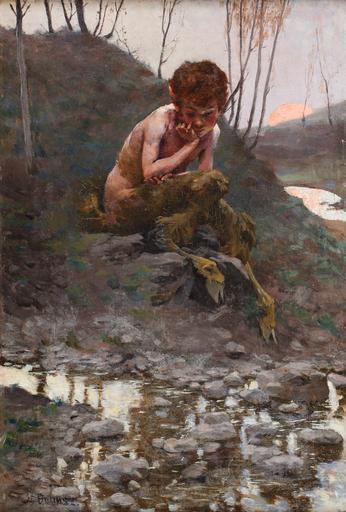 Keywords: Mały faun.jpg Artwork title Mały faun Little Faun Kleiner Faun before 1923 1 http //www agra-auctions com/object php idd 661 Agra auctions 04 December 1997<br/>2 http //www polswissart pl/obraz id 1622 auction 98 Polswiss Art Aukcja Dzieł Sztuki 08 October 2013 lot 17 Creator Stanisław Bohusz-Siestrzeńcewicz oil canvas cm 49 33 http //www agraart pl/cgi-bin/obiekt cgi act 1 nr 661 agraart pl object history exhibition history credit line signed St BOHUSZ accession number PD-old-auto-1923 1927 Stanisław Bohusz-Siestrzeńcewicz painter Uploaded with UploadWizard Fauns Paintings of Pan