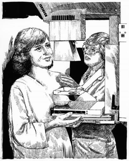 | Keywords: Mammography illustration.jpg  A woman getting a mammogam being assisted by a radiology technician Topics/Categories Historical -- Graphics Test or Procedure -- Imaging Procedures Type B W Illustration Source National Cancer Institute Al Louang Illustrator 2504 1989-12 Reuse Restrictions None - This image is in the public domain and can be freely reused Please credit the source and/or author listed above Al Louang Illustrator PD-USGov-HHS-NIH Media from National Cancer Institute Visuals Online Images uploaded by Fæ Mammography |