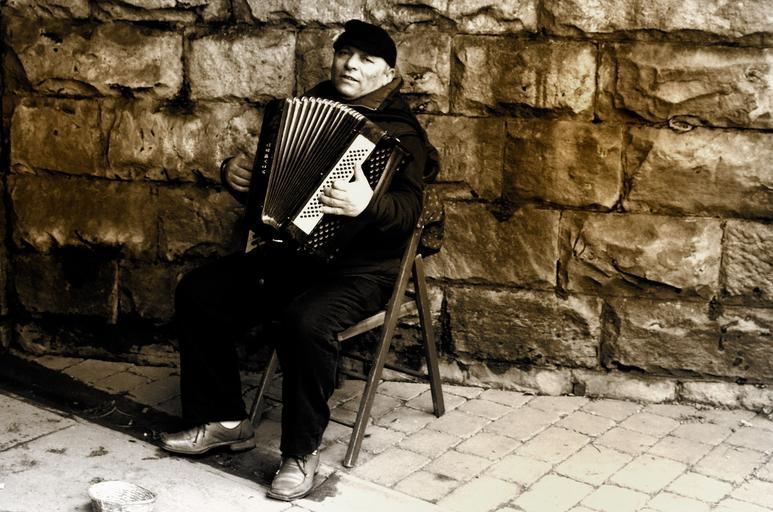 Keywords: man accordion people music work livelihood style art fate instrument background