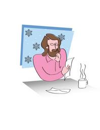 Keywords: man beard teacher brown hair pink caucasian tea coffee reading letter male relaxing snowflakes christmas contact correspondence envelope message mail xmas post communication