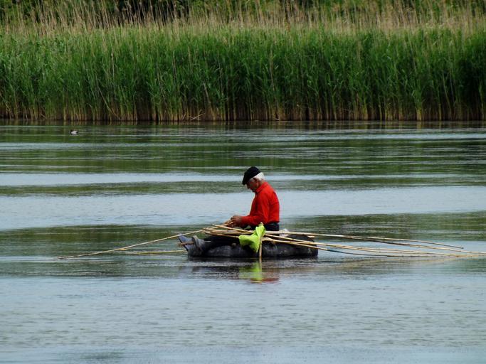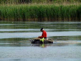 Keywords: man boat lake reflection nature