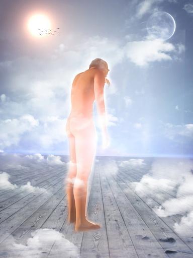 Keywords: man naked sky clouds water stones boards bohlen sun moon god creation alone lonely birds blue wide hell