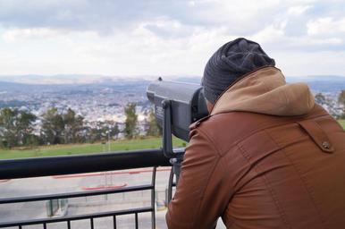 Keywords: man observing binoculars horizon view young landscape city urban landscape viewpoint morelia