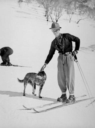 | Keywords: Man on skis patting cattle dog.jpg en Man standing on snow skis patting a Cattle Dog in the Snowy Mountains NSW around 1930 Pictures Collection of the National Library of Australia nla pic-vn3989299 Author Permission to publish on the Wikipedia Australian Cattle Dog page received in writing from the National Library 2009-12-30 Australian Cattle Dog dogs in snow Skiing in Australia Old photographs of dogs Males with dogs 1930s in Australian society PD-Australia | ||||