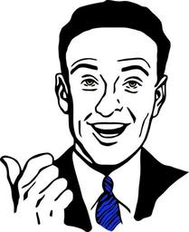 Keywords: man person point pointing smile thumb laughing happy pleased delighted glad tie businessman business clothing suit