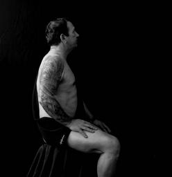 Keywords: man portrait sitting black and white tattoo character only male