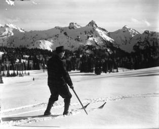 Keywords: Man skiing, Mount Rainier National Park, Washington, ca 1907 (BAR 133).jpeg check categories 26 September 2015 2 Photograph Creator Albert Henry Barnes On sleeve of negative Midwinter paradise Man on skiies Subjects LCTGM Skiers--Washington State --Mount Rainier National Park; Skiing--Washington State --Mount Rainier National Park Subjects LCSH Mount Rainier National Park Wash depicted place Mount Rainier National Park ca 1907 Silver gelatin b/w Institution University of Washington UWASH-AHBarnes-source accession number 133 PD-old-auto-1923 1920 Information field Order Number BAR224 Images from the Albert Henry Barnes Collection to check Skiers Hiking Mount Rainier