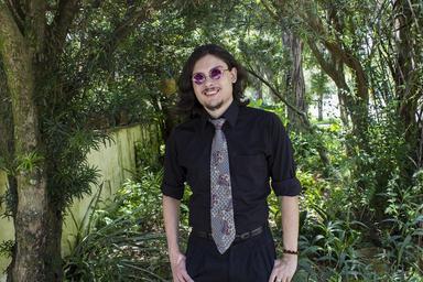 Keywords: man tie glasses goatee long hair stylish business romantic adult young male posing