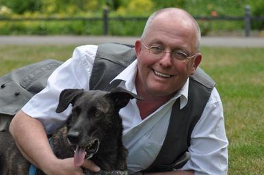 Keywords: man with dog bitch friendship dog protector hybrid sweet