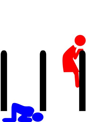Keywords: man woman sign icon symbol boy lady silhouette female male girl symbols funny toilet pictogram bathroom restroom stickman stick figure matchstick man gents peek signage toilette washroom loo blue red climbing looking