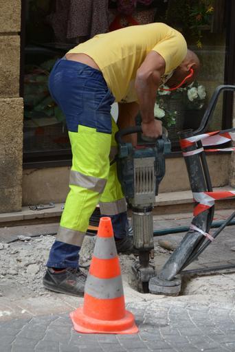 Keywords: man worker drill roadworks job