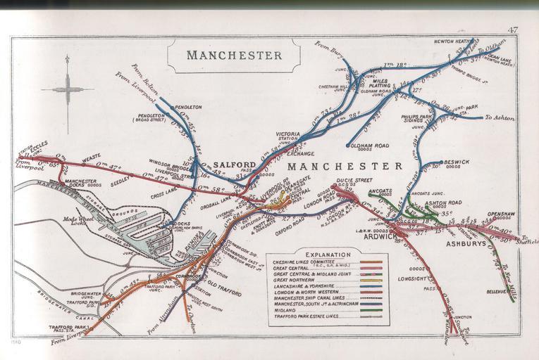 Keywords: Manchester RJD 47.JPG Railway Junctions in Manchester pre grouping Railway Junction Diagram and 1910 1914 Railway Clearing House Author died more than 70 years ago - public domain PD-old Railways Junctions Diagram 1914 041-080 047 Greater Manchester RJD 047 Lancashire RJD 1914 047 Cheshire Lines Committee RJD 047 Great Central Railway RJD 047 Great Northern Railway Great Britain RJD 047 Lancashire and Yorkshire Railway RJD 047 London and North Western Railway RJD 047 Manchester South Junction and Altrincham Railway RJD 047 Midland Railway RJD 047 Sheffield and Midland Railway Companies' Committee RJD 047 Old maps of the City of Manchester 1910 Public transport maps of the City of Manchester Maps of the City of Salford Maps of the Metropolitan Borough of Trafford Old maps of Greater Manchester Manchester Ship Canal Railway