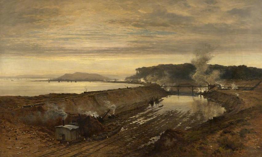 | Keywords: Manchester Ship Canal The Making of Eastham Dock.jpg Artwork Creator Benjamin Williams Leader en A painting by Benjamin Williams Leader in 1891 of the Manchester Ship Canal being built The painting focuses on the building of Eastham Docks see http //books google co uk/books id Sks583w0MXkC pg PA79 dq 22manchester+ship+canal 22+land+purchase hl en ei UWh2Tpa5F4Sp8APTopnCBA sa X oi book_result ct result resnum 7 ved 0CF4Q6AEwBjge v onepage q f false this link for more information 1891 oil canvas cm 112 184 Gallery Oldham accession number 13 27/1 object history credit line gift from Miss Platt 1927 exhibition history http //www bbc co uk/arts/yourpaintings/paintings/manchester-ship-canal-the-making-of-eastham-dock-90716 BBC Your Paintings PD-old-100 Uploaded with UploadWizard Benjamin Williams Leader Gallery Oldham Manchester Ship Canal Bebington Images from BBC Your Paintings Docks in England Construction in Cheshire |