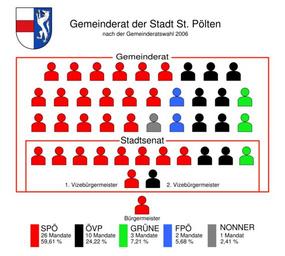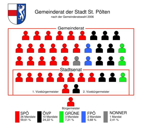 | Keywords: Mandatsverteilung Gemeinderat und Stadtsenat St Poelten 2006.svg  Mandatsverteilung im Gemeinderat und Stadtsenat St Pöltens nach der Gemeinderatswahl 2006 own used Bild Coat_of_Sankt_Pölten svg and Bild Sitzverteilungsfigur svg von Benutzer DLiebisch 2008-10-18 AleXXw Released into the public domain by the author AleXXw Wappenrecht Original upload log page de wikipedia Mandatsverteilung_Gemeinderat_und_Stadtsenat_St_Poelten_2006 svg 2009-05-25 15 49 AleXXw 1000×900× 58726 bytes Ein Mandatar hat gefehlt Former different file 2008-10-18 19 59 Hk kng 1000×900× 55698 bytes Beschreibung Quelle Information Mandatsverteilung im Gemeinderat und Stadtsenat St Pöltens nach der Gemeinderatswahl 2006 selbst gezeichnet unter Verwendung von Bild Coat_of_Sankt_Pölten svg und Bild Sitzver St Pölten |