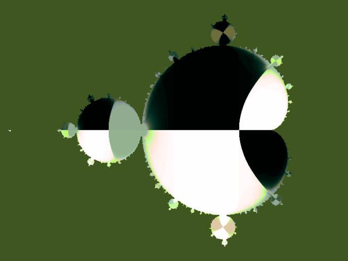 | Keywords: Mandelbrot inside (64 iters colour).gif Mandelbrot set a fractal Here it's inside is colourised from a special method named palette walk In this example the function uses 64 iterations and a palette of 128 colours It starts from palette index 64 Then in every iteration it tests for x y < 0 if true then it decreases the palette index by 1 else it will be incremented by 1 The method can also be used to colourise the outside the aura of the fractal If one uses two palettes then it can be combined with the normal colour-mapping method the count of iterations used as palette index A example of the combination method is the image Julia set C 0 285 0 01 II jpg See also thumb left Black white version Solkoll 2D Mandelbrot set interior Mandelbrot sets whole |
