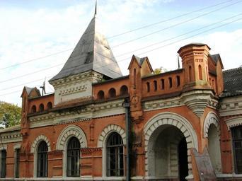 Keywords: Manevychi railway station.jpg uk аневичі Північний фасад залізничного вокзалу pl Maniewicze Północna elewacja dworca kolejowejo wlasna praca Promek 2010 Manevychi Railway Station