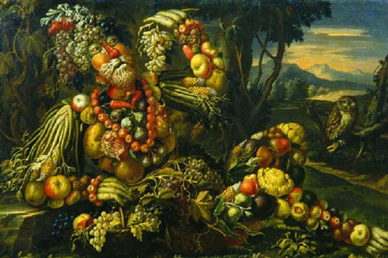 | Keywords: Maniera di Arcimboldo, Giuseppe - Natura morta con frutta e verdure di stagione - Autumno.jpg manner of de aus einer Serie der Vier Jahreszeiten - 1690 1699 oil canvas cm 96 140 institution Pinacoteca Tosio Martinengo http //www lombardiabeniculturali it/opere-arte/schede/D0090-00958/ view autori offset 2 hid 855 sort sort_int lombardiabeniculturali it Other versions PD-old-100-1923 DEFAULTSORT Arcimboldo Still-life with fruits and vegetable of the season Autumn Paintings by Giuseppe Arcimboldo Anthropomorphic pareidolias by Giuseppe Arcimboldo Fruit or vegetables composing people Paintings of autumn People with owls in art Oil paintings of men Oil still-life paintings Oil still-life paintings of fruits Owls in paintings Recumbent men in art Recumbent men supine Still-life paintings of vegetables Paintings of fruit baskets 16th-century allegorical paintings 16th-century oil on canvas paintings 16th-century paintings from Italy 16th-century paintings not categorised by year 16th-century still-life paintings of fruits |