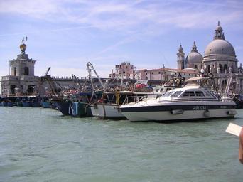 Keywords: Manif marins pecheurs venise.JPG fr manif marins pecheurs venise 18-08-2005 own Abxbay 2005-08-18 Demonstrations and protests in Italy Punta della Dogana Fishermen 2005 events in Venice August 2005 in Venice Police boats in Venice