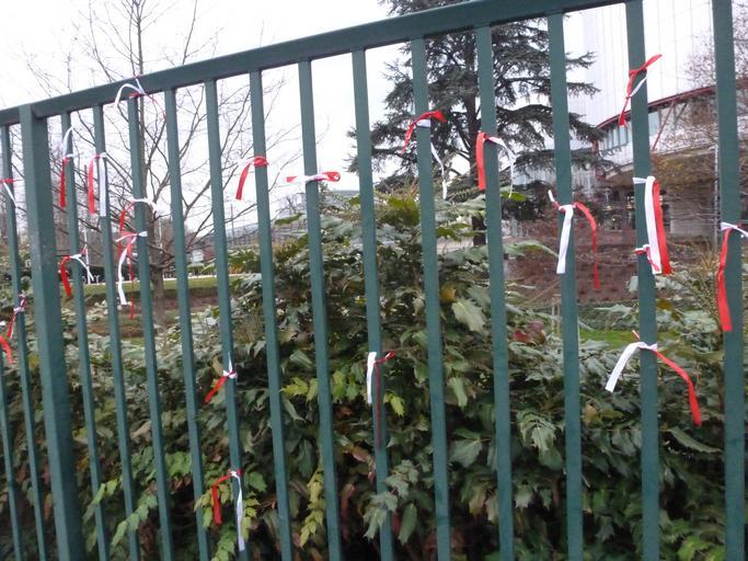 | Keywords: Manifestation contre la réforme territoriale 13-12-2014 26.jpg  fr Manifestation contre la réforme territoriale et la fusion «Alsace-Champagne-Ardenne-Lorraine» le 13 décembre 2014 à Strasbourg <br /> Les manifestants ont noués sur la grille du palais des droits de l ™homme des rubans rouges et blanc couleurs de l ™Alsace 2014-12-13 17 01 16 own Paralacre other versions cc-zero Manifestation contre la réforme territoriale Strasbourg 13-12-2014 European Court of Human Rights Pictures by User Paralacre Uploaded with UploadWizard |
