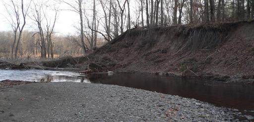 Keywords: Manna site cut bank series a.jpg en Raymondskill Creek just above its junction with the Delaware River in Delaware Water Gap National Recreation Area in Pike County Pennsylvania First downstream-most in a series of five photos of the south bank moving upstream showing erosion into the Manna archaeological site; the site is part of the Minisink Historic District which is listed in the National Register of Historic Places 2011-11-26 own Ammodramus cc-zero Uploaded with UploadWizard Pictures by Ammodramus Taken with Panasonic Lumix DMC-FZ20 Manna archaeological site |