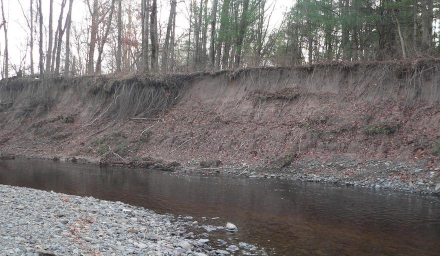 Keywords: Manna site cut bank series b.jpg en Raymondskill Creek just above its junction with the Delaware River in Delaware Water Gap National Recreation Area in Pike County Pennsylvania Second in a series of five photos of the south bank moving upstream showing erosion into the Manna archaeological site; the site is part of the Minisink Historic District which is listed in the National Register of Historic Places 2011-11-26 own Ammodramus cc-zero Uploaded with UploadWizard Pictures by Ammodramus Taken with Panasonic Lumix DMC-FZ20 Manna archaeological site |