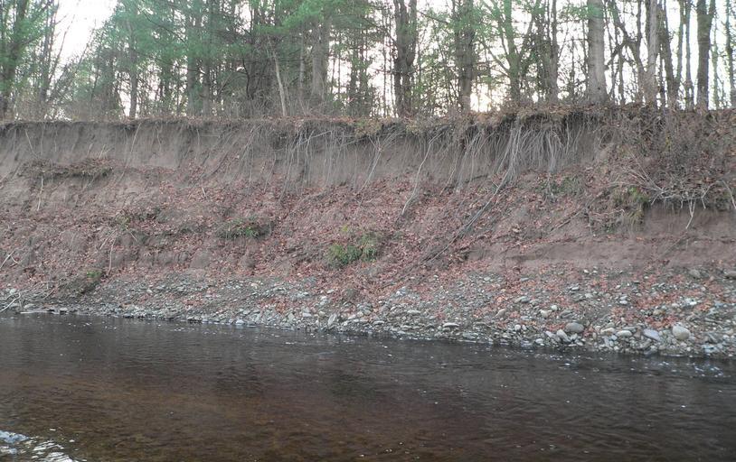Keywords: Manna site cut bank series c.jpg en Raymondskill Creek just above its junction with the Delaware River in Delaware Water Gap National Recreation Area in Pike County Pennsylvania Third in a series of five photos of the south bank moving upstream showing erosion into the Manna archaeological site; the site is part of the Minisink Historic District which is listed in the National Register of Historic Places 2011-11-26 own Ammodramus cc-zero Uploaded with UploadWizard Pictures by Ammodramus Taken with Panasonic Lumix DMC-FZ20 Manna archaeological site |