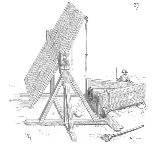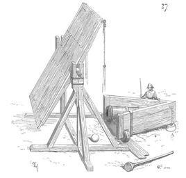 Keywords: Mantelet.protegeant.canon.png Si les artilleurs prétendaient se garder des éclats d'une bouche à feu défectueuse ils pensaient aussi à se mettre à l'abri des projectiles ennemis à cet effet d'épais mantelets en bois étaient dressés devant les pièces d'artillerie Ces mantelets roulaient sur un axe horizontal étaient relevés au moment du tir et retombaient verticalement par leur propre poids lorsque la pièce était déchargée de manière à la masquer complétement ainsi que les servants occupés à la recharger 27 Viollet-le-Duc Ranged weapon Viollet-le-Duc Medieval gunnery and artillery |