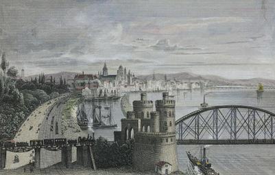 | Keywords: Manz And Part Of Port From The South.jpg  The city of Mainz Germany sometime in the late 19th century Visible is the Südbruecke southern railway bridge over the Rhine and parts of the city's port looking north down the river Mainz von Süden gesehen; spätes 19 Jahrhundert Zu sehen ist die Südbrücke südliche Eisenbahnbrücke der Winterhafen und die Altstadt Postcard image Internet date Late 19th century based on railway engine and ship forms as well as style of art later postcards used photography and the fact that the Winterhafen winter port shown was constructed in 1865 but the Theodor-Heuss-Bridge from 1885 is still missing author Postcard picture from the late 19th or early 20th century Copyright expired - PD-old other versions Unknown This version border-cropped and enlarged PD-old Port of Mainz Postcards of Mainz Unidentified steam locomotives of Germany Mainz in the 19th century Südbrücke Mainz Iron truss arch bridges in Germany Bridge towers Towers in Mainz |