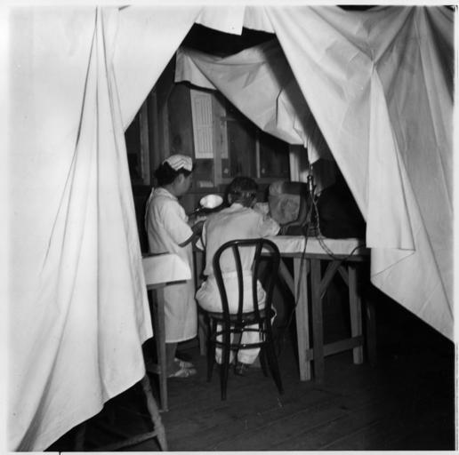 | Keywords: Manzanar Relocation Center, Manzanar, California. Making an examination of an evacuee patient are D . . . - NARA - 538140.jpg Scope and content The full caption for this photograph reads Manzanar Relocation Center Manzanar California Making an examination of an evacuee patient are Doctor Takahashi Ear Nose and Throat Specialist and his wife who is his assistant They are evacuees of Japanese ancestry from Los Angeles now spending the duration at this War Relocation Authority Center General notes 538140 Local identifier 210-G-C853 Department of the Interior War Relocation Authority 02/16/1944 - 06/30/1946 NARA-Author Lange Dorothea 1895-1965 Photographer 1372774 <br /> Still Picture Records Section Special Media Archives Services Division NWCS-S National Archives at College Park 8601 Adelphi Road College Park MD 20740-6001 1942-07-03 Record group Record Group 210 Records of the War Relocation Authority 1941 - 1989 Record group ARC 537 Central Photographic File of the War Relocation Authority compiled 1942 - 1945 Series ARC 536000 File unit File unit ARC Variant control numbers NAIL Control Number NWDNS-210-G-C853 Other versions <gallery> File Manzanar_Relocation_Center _Manzanar _California _Making_an_examination_of_an_evacuee_patient_are_D_ _ _ _-_NARA_-_538140 tif tif File Manzanar_Relocation_Center _Manzanar _California _Making_an_examination_of_an_evacuee_patient_are_D_ _ _ _-_NARA_-_538140 jpg jpg </gallery> NARA-cooperation PD-USGov Photographs by Dorothea Lange of Manzanar War Relocation Center |