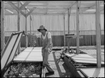 | Keywords: Manzanar Relocation Center, Manzanar, California. Guayule beds in the lath house at the Manzanar Re . . . - NARA - 538016.jpg  Scope and content The full caption for this photograph reads Manzanar Relocation Center Manzanar California Guayule beds in the lath house at the Manzanar Relocation Center General notes 538016 Local identifier 210-G-C722 Department of the Interior War Relocation Authority 02/16/1944 - 06/30/1946 NARA-Author Lange Dorothea 1895-1965 Photographer 1372774 <br /> Still Picture Records Section Special Media Archives Services Division NWCS-S National Archives at College Park 8601 Adelphi Road College Park MD 20740-6001 1943-06-28 Record group Record Group 210 Records of the War Relocation Authority 1941 - 1989 Record group ARC 537 Central Photographic File of the War Relocation Authority compiled 1942 - 1945 Series ARC 536000 File unit File unit ARC Variant control numbers NAIL Control Number NWDNS-210-G-C722 Other versions <gallery> File Manzanar_Relocation_Center _Manzanar _California _Guayule_beds_in_the_lath_house_at_the_Manzanar_Re_ _ _ _-_NARA_-_538016 tif tif File Manzanar_Relocation_Center _Manzanar _California _Guayule_beds_in_the_lath_house_at_the_Manzanar_Re_ _ _ _-_NARA_-_538016 jpg jpg </gallery> NARA-cooperation PD-USGov Photographs by Dorothea Lange of Manzanar War Relocation Center Greenhouses in the United States Manzanar Agriculture in California Manzanar NARA images of Inyo County California Black and white photographs of California |