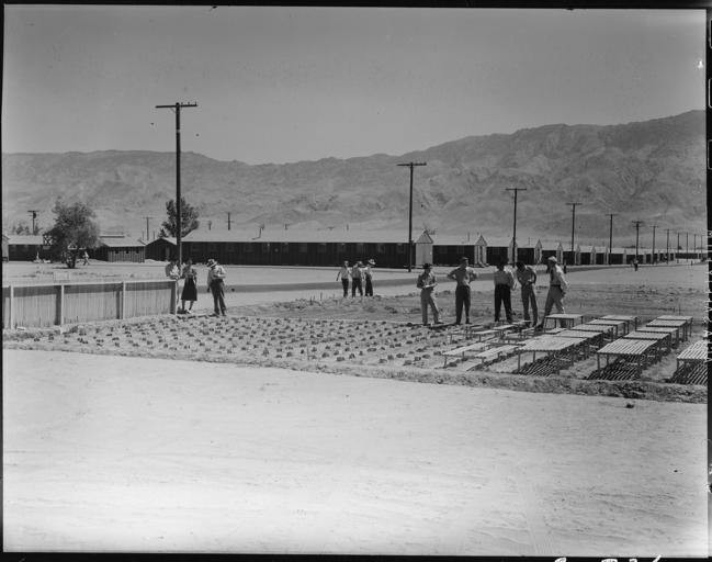 | Keywords: Manzanar Relocation Center, Manzanar, California. Doctor Robert Emerson, on the extreme right, visi . . . - NARA - 538020.jpg Scope and content The full caption for this photograph reads Manzanar Relocation Center Manzanar California Doctor Robert Emerson on the extreme right visits the War Relocation Center to check up the progress of the guyaule plantings Doctor Emerson is a bio-chemist and botanist from the California Institute of Technology and the director of the guyaule rubber experiment He is here shown conferring with a part of his Japanese staff of young evcauee scientests at Plot 4 There are 408 plants in this plot that have been in the ground for ten days General notes 538020 Local identifier 210-G-C726 Department of the Interior War Relocation Authority 02/16/1944 - 06/30/1946 NARA-Author Lange Dorothea 1895-1965 Photographer 1372774 <br /> Still Picture Records Section Special Media Archives Services Division NWCS-S National Archives at College Park 8601 Adelphi Road College Park MD 20740-6001 1942-06-28 Record group Record Group 210 Records of the War Relocation Authority 1941 - 1989 Record group ARC 537 Central Photographic File of the War Relocation Authority compiled 1942 - 1945 Series ARC 536000 File unit File unit ARC Variant control numbers NAIL Control Number NWDNS-210-G-C726 Other versions <gallery> File Manzanar_Relocation_Center _Manzanar _California _Doctor_Robert_Emerson _on_the_extreme_right _visi_ _ _ _-_NARA_-_538020 tif tif File Manzanar_Relocation_Center _Manzanar _California _Doctor_Robert_Emerson _on_the_extreme_right _visi_ _ _ _-_NARA_-_538020 jpg jpg </gallery> NARA-cooperation PD-USGov Photographs by Dorothea Lange of Manzanar War Relocation Center |
