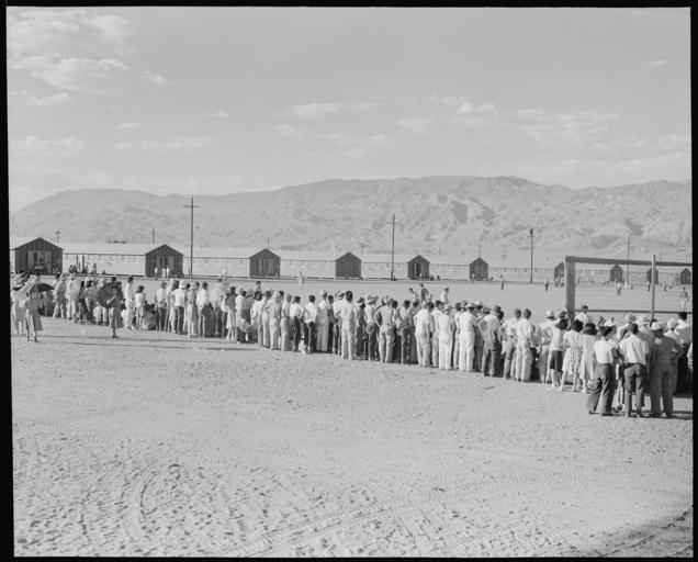 | Keywords: Manzanar Relocation Center, Manzanar, California. Evacuees watching a baseball game at this War Rel . . . - NARA - 538063.jpg Scope and content The full caption for this photograph reads Manzanar Relocation Center Manzanar California Evacuees watching a baseball game at this War Relocation Authority center This is a very popular recreation with 80 teams having been formed throughout the Center Most of the playing is done between the barrack blocks General notes 538063 Local identifier 210-G-C770 Department of the Interior War Relocation Authority 02/16/1944 - 06/30/1946 NARA-Author Lange Dorothea 1895-1965 Photographer 1372774 <br /> Still Picture Records Section Special Media Archives Services Division NWCS-S National Archives at College Park 8601 Adelphi Road College Park MD 20740-6001 1942-07-02 Record group Record Group 210 Records of the War Relocation Authority 1941 - 1989 Record group ARC 537 Central Photographic File of the War Relocation Authority compiled 1942 - 1945 Series ARC 536000 File unit File unit ARC Variant control numbers NAIL Control Number NWDNS-210-G-C770 Other versions <gallery> File Manzanar_Relocation_Center _Manzanar _California _Evacuees_watching_a_baseball_game_at_this_War_Rel_ _ _ _-_NARA_-_538063 tif tif File Manzanar_Relocation_Center _Manzanar _California _Evacuees_watching_a_baseball_game_at_this_War_Rel_ _ _ _-_NARA_-_538063 jpg jpg </gallery> NARA-cooperation PD-USGov Photographs by Dorothea Lange of Manzanar War Relocation Center |