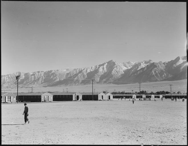 | Keywords: Manzanar Relocation Center, Manzanar, California. View of barracks at this War Relocation Authority . . . - NARA - 538129.jpg Scope and content The full caption for this photograph reads Manzanar Relocation Center Manzanar California View of barracks at this War Relocation Authority center looking southwest across the wide fire-break which is used as a recreation field General notes 538129 Local identifier 210-G-C841 Department of the Interior War Relocation Authority 02/16/1944 - 06/30/1946 NARA-Author Lange Dorothea 1895-1965 Photographer 1372774 <br /> Still Picture Records Section Special Media Archives Services Division NWCS-S National Archives at College Park 8601 Adelphi Road College Park MD 20740-6001 1942-06-30 Record group Record Group 210 Records of the War Relocation Authority 1941 - 1989 Record group ARC 537 Central Photographic File of the War Relocation Authority compiled 1942 - 1945 Series ARC 536000 File unit File unit ARC Variant control numbers NAIL Control Number NWDNS-210-G-C841 Other versions <gallery> File Manzanar_Relocation_Center _Manzanar _California _View_of_barracks_at_this_War_Relocation_Authority_ _ _ _-_NARA_-_538129 tif tif File Manzanar_Relocation_Center _Manzanar _California _View_of_barracks_at_this_War_Relocation_Authority_ _ _ _-_NARA_-_538129 jpg jpg </gallery> NARA-cooperation PD-USGov Photographs by Dorothea Lange of Manzanar War Relocation Center |