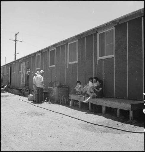 | Keywords: Manzanar Relocation Center, Manzanar, California. This is the type of barrack buildings in this rel . . . - NARA - 538134.jpg Scope and content The full caption for this photograph reads Manzanar Relocation Center Manzanar California This is the type of barrack buildings in this relocation center Each one contains four rooms to house four family groups Each has it's own outside entrance two at the side and one at each end There are thirty-six blocks of barracks General notes 538134 Local identifier 210-G-C846 Department of the Interior War Relocation Authority 02/16/1944 - 06/30/1946 NARA-Author Lange Dorothea 1895-1965 Photographer 1372774 <br /> Still Picture Records Section Special Media Archives Services Division NWCS-S National Archives at College Park 8601 Adelphi Road College Park MD 20740-6001 1942-06-30 Record group Record Group 210 Records of the War Relocation Authority 1941 - 1989 Record group ARC 537 Central Photographic File of the War Relocation Authority compiled 1942 - 1945 Series ARC 536000 File unit File unit ARC Variant control numbers NAIL Control Number NWDNS-210-G-C846 Other versions <gallery> File Manzanar_Relocation_Center _Manzanar _California _This_is_the_type_of_barrack_buildings_in_this_rel_ _ _ _-_NARA_-_538134 tif tif File Manzanar_Relocation_Center _Manzanar _California _This_is_the_type_of_barrack_buildings_in_this_rel_ _ _ _-_NARA_-_538134 jpg jpg </gallery> NARA-cooperation PD-USGov Photographs by Dorothea Lange of Manzanar War Relocation Center |