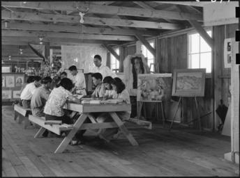 | Keywords: Manzanar Relocation Center, Manzanar, California. Class is being held in the Art School at this War . . . - NARA - 538179.jpg Scope and content The full caption for this photograph reads Manzanar Relocation Center Manzanar California Class is being held in the Art School at this War Relocation Authority center for evacuees of Japanese ancestry Instruction is given in oil and water-color life-drawing and sketching lettering poster-making and fashion drawing General notes 538179 Local identifier 210-G-C897 Department of the Interior War Relocation Authority 02/16/1944 - 06/30/1946 NARA-Author Lange Dorothea 1895-1965 Photographer 1372774 <br /> Still Picture Records Section Special Media Archives Services Division NWCS-S National Archives at College Park 8601 Adelphi Road College Park MD 20740-6001 1942-06-30 Record group Record Group 210 Records of the War Relocation Authority 1941 - 1989 Record group ARC 537 Central Photographic File of the War Relocation Authority compiled 1942 - 1945 Series ARC 536000 File unit File unit ARC Variant control numbers NAIL Control Number NWDNS-210-G-C897 Other versions <gallery> File Manzanar_Relocation_Center _Manzanar _California _Class_is_being_held_in_the_Art_School_at_this_War_ _ _ _-_NARA_-_538179 tif tif File Manzanar_Relocation_Center _Manzanar _California _Class_is_being_held_in_the_Art_School_at_this_War_ _ _ _-_NARA_-_538179 jpg jpg </gallery> NARA-cooperation PD-USGov Photographs by Dorothea Lange of Manzanar War Relocation Center |