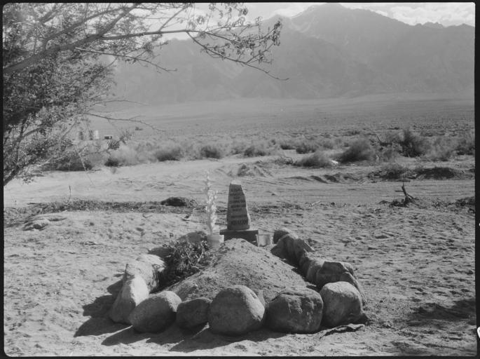 | Keywords: Manzanar Relocation Center, Manzanar, California. The first grave at the Manzanar Center's cemetery . . . - NARA - 538184.jpg Scope and content The full caption for this photograph reads Manzanar Relocation Center Manzanar California The first grave at the Manzanar Center's cemetery It is that of Matsunosuke Murakami 62 who died of heart disease on May 16 He had been ill ever since he arrived here with the first contingent and had been confined to the hospital since March 23 General notes 538184 Local identifier 210-G-C902 Department of the Interior War Relocation Authority 02/16/1944 - 06/30/1946 NARA-Author Lange Dorothea 1895-1965 Photographer 1372774 <br /> Still Picture Records Section Special Media Archives Services Division NWCS-S National Archives at College Park 8601 Adelphi Road College Park MD 20740-6001 1942-06-30 Record group Record Group 210 Records of the War Relocation Authority 1941 - 1989 Record group ARC 537 Central Photographic File of the War Relocation Authority compiled 1942 - 1945 Series ARC 536000 File unit File unit ARC Variant control numbers NAIL Control Number NWDNS-210-G-C902 Other versions <gallery> File Manzanar_Relocation_Center _Manzanar _California _The_first_grave_at_the_Manzanar_Center's_cemetery_ _ _ _-_NARA_-_538184 tif tif File Manzanar_Relocation_Center _Manzanar _California _The_first_grave_at_the_Manzanar_Center's_cemetery_ _ _ _-_NARA_-_538184 jpg jpg </gallery> NARA-cooperation PD-USGov Photographs by Dorothea Lange of Manzanar War Relocation Center Cemeteries in California Owens Valley 1942 in California NARA images of Inyo County California Black and white photographs of California Owens Valley |
