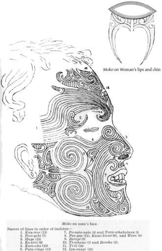 | Keywords: MaoriMoko.png art Maori Moko scanned from John Rutherford The White Chief pre-1923 en wikipedia 2004-10-09 MikeX wikipedia en PD-old original upload log page en wikipedia MaoriMoko png 2004-10-09 05 22 MikeX 547×846×8 86629 bytes <nowiki>Maori Moko from John Rutherford smaller </nowiki> People of Maori descent Face tattoos in New Zealand Tattoos in Polynesia Men with face tattoos Women with face tattoos Tattoos in Polynesia Traditional tattoo patterns | ||||