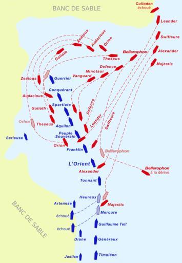 | Keywords: Map Battle of the Nile 1798-fr.svg  fr Carte des positions et des mouvements des bateaux lors de la bataille de la baie d'Aboukir les 1er et 2 août 1798 Les bateaux britanniques sont en rouge et les bateaux français sont en bleu La position intermédiaire des bateaux est donnée par une couleur pâle rouge/bleue 2014-07-19 23 24 56 File Battle of Aboukir Bay vectorized svg Gsl derivative work Augusta 89 Other versions/Map Battle of the Nile 1798 Atelier graphique carte Custom license marker 2014 07 19 Gsl Uploaded with UploadWizard Maps of the Battle of the Nile SVG maps showing history in French |