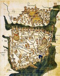 | Keywords: Map of Constantinople (1422) by Florentine cartographer Cristoforo Buondelmonte.jpg des îles de l'archipel Bibliothèque nationale Paris is the oldest surviving map of the city and the only surviving map which predates the Turkish conquest of Constantinople in 1453 Liber insularum Archipelagi 1824 version available at the Bibliothèque nationale de France Paris 1422 Cristoforo Buondelmonti PD-old-100 <gallery>File Constantinople mediaeval map jpg</gallery> Maps of Constantinople Maps made in the 15th century House of Buondelmonti |