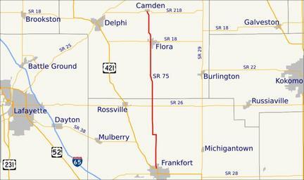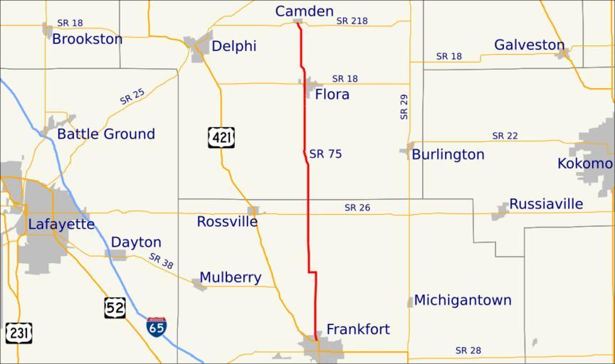 Keywords: Map of Indiana State Road 75 (north).svg This is a map which shows the route of the northern portion of Indiana State Road 75 in the United States My own work using freely-available shape data and custom-written MapScript applications 2008-03-08 Omnedon Road maps of Indiana SR075N |