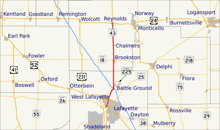 View Original: | Map of Indiana State Road 43 (north).svg (870x516) | |||