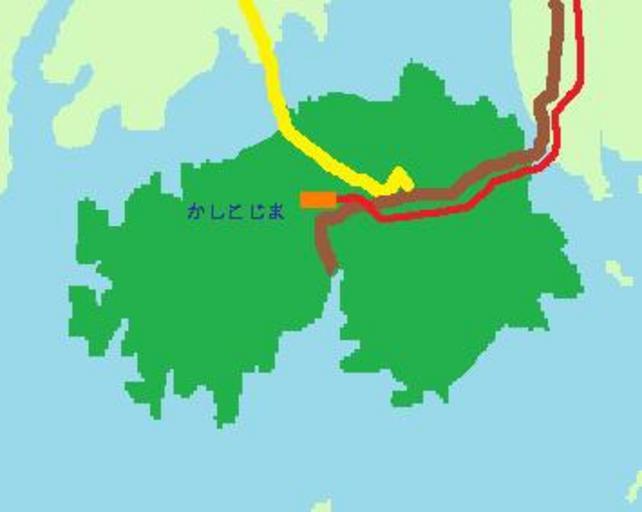 | Keywords: Map of Kashikojima.jpg en This is a map of Kashikojima Shima City Mie Pref Japan Green is Kashikojima yellow green is land Blue is the sea red is Kintetsu Line brown is Route 167 and yellow is mie prefectural route 17 ja 三重 志摩市の賢島の 図 緑が賢島 黄緑が賢島以外の陸 が海 赤が近鉄志摩線 茶色が国道167号線 黄色が三重 道17号線をさす Own Miyuki Meinaka 2009-04-07 Public domain Maps of Shima Mie Kashikojima |