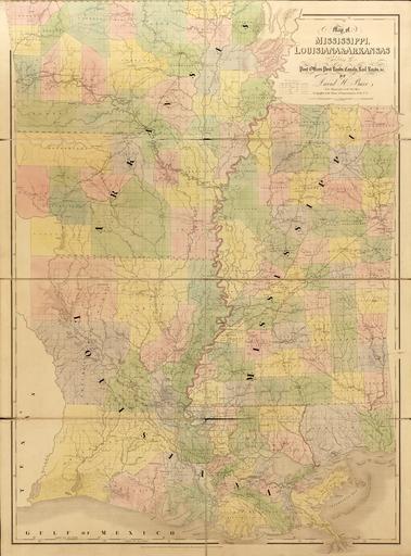 Keywords: Map of Mississippi, Louisiana and Arkansas WDL9599.png Artwork ru Бу Дэвид Г 1803-1875 гг fr Burr David H 1803-1875 en Burr David H 1803-1875 zh 大卫·伯尔,1803-1875 年 pt Burr David H 1803-1875 ar ديفيد بور، 1803-1875 es Burr David H 1803-1875 ru Ка та штатов иссисипи Луизиана и А канзас fr Carte du Mississippi de la Louisiane et de l'Arkansas en Map of Mississippi Louisiana and Arkansas zh 密西西比州 路易斯安那州和阿肯色州 图 pt Mapa do Mississippi da Louisiana e do Arkansas ar خريطة ميسيسيبي ولويزيانا وأركنساس ru Дэвид Г Бу 1803 1875 гг землеме и ка тог аф служил топог афом Почтового депа тамента США в 1832 1838 гг и геог афом Палаты п едставителей в 1838 1847 гг Под уководством гене ального почтмейсте а Бу соби ал от почтмейсте ов всей ст аны инфо мацию о т анспо тных ма ш утах почтовых т актах железных до огах и каналах а также о асположении почтовых отделений с целью выпуска большого комплекта госуда ственных и егиональных ка т Опубликованный в 1839 г известной лондонской ка тог афической фи мой Джона Э оусмита <em> Аме иканский атлас </em> Бу а п едставлял под обную ка тину заселения и т анспо тных ма ш утов в Соединенных Штатах Аме ики за несколько десятилетий до Г ажданской войны Здесь п едставлена составленная Бу ом ка та штатов иссисипи Луизиана и А канзас одна из 13 ка т атласа 30 ап еля 1812 г Луизиана стала 18-м штатом США и пе вым штатом выделенным из те ито ии Луизиана п иоб етенной у Ф анции в 1803 г Те ито ия иссисипи была п инята в состав Союза в качестве 20-го штата 10 декаб я 1817 г А канзас был о ганизован как те ито ия в 1819 г и стал 25-м штатом 15 июня 1836 г Т и штата были связаны экономически важной коммуникацией екой иссисипи За важным исключением в виде космополитического по тового го ода ового О леана все т и штата были п еимущественно сельскохозяйственными и имели малое количество к упных и небольших го одов <br>Каналы; Река иссисипи; Почтовые т акты; Почтовая служба; Железные до оги fr Géomètre et cartographe David H Burr 1803-1875 fut topographe au Département des Postes des États-Unis entre 1832 et 1838 puis géographe à la Chambre des représentants entre 1838 et 1847 Sous la direction du Maître des postes général Burr compila les informations fournies par les maîtres des postes à travers le pays concernant les routes routes postières chemins de fer et cours d'eau et l'emplacement des bureaux de poste afin de réaliser une importante série de cartes des États et des régions Publié en 1839 par l'éminente société cartographique de John Arrowsmith <em>L'atlas américain</em> de Burr représente de façon détaillée la répartition du peuplement et du transport aux États-Unis quelques dizaines d'années avant la guerre de Sécession La carte de Burr exposée ici représentant le Mississippi la Louisiane et l'Arkansas fait partie des 13 cartes de l'atlas Le 30 avril 1812 la Louisiane devint le 18<sup>e</sup> État des États-Unis et le premier provenant de la division du Territoire de Louisiane acheté à la France en 1803 Le Mississippi fut intégré à l'Union comme 20<sup>e</sup> État le 10 décembre 1817 L'Arkansas fut organisé en territoire en 1819 puis devint le 25<sup>e</sup> État le 15 juin 1836 Les trois États étaient liés par la source essentielle de leur économie le fleuve Mississippi l'exception notable de la ville portuaire cosmopolite de La Nouvelle-Orléans les trois États étaient en grande majorité ruraux et ne se composaient que d'un petit nombre de villes et grandes villes <br>Canaux; Fleuve Mississippi; Routes postières; Service postal; Chemins de fer en David H Burr 1803 75 was a surveyor and cartographer who served as topographer to the United States Post Office Department in 1832 38 and as geographer to the House of Representatives in 1838 47 Under the direction of the postmaster general Burr compiled information from postmasters throughout the country about transportation routes post roads railroads and canals and the location of post offices to produce a large set of state and regional maps Published in 1839 by the prominent London mapmaking firm of John Arrowsmith Burr s <em>The American Atlas</em> offers a detailed picture of settlement and transportation patterns in the United States in the decades before the Civil War Shown here is Burr s map of Mississippi Louisiana and Arkansas one of 13 maps in the atlas On April 30 1812 Louisiana became the 18th U S state and the first carved out of the Louisiana Territory purchased from France in 1803 Mississippi was admitted to the Union as the 20th state on December 10 1817 Arkansas was organized as a territory in 1819 and became the 25th state on June 15 1836 The three states were tied together by their economic lifeline the Mississippi River With the significant exception of t