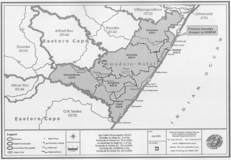 Keywords: Map No. 23 of Schedule 2 to Notice 1998 of 2005.png Notice 1998 of 2005 Depicts the boundaries of the Ugu District Municipality File Notice 1998 of 2005 djvu Municipal Demarcation Board of South Africa 2005-10-31 PD-South-Africa-exempt Maps of KwaZulu-Natal municipalities with 2006 borders Notice 1998 of 2005 |