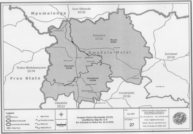 Keywords: Map No. 27 of Schedule 2 to Notice 1998 of 2005.png Notice 1998 of 2005 Depicts the boundaries of the Amajuba District Municipality File Notice 1998 of 2005 djvu Municipal Demarcation Board of South Africa 2005-10-31 PD-South-Africa-exempt Maps of KwaZulu-Natal municipalities with 2006 borders Notice 1998 of 2005 |