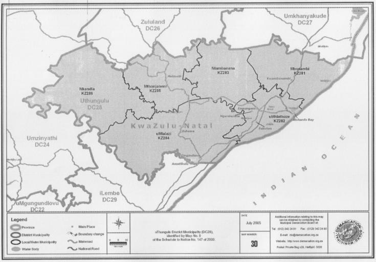 Keywords: Map No. 30 of Schedule 2 to Notice 1998 of 2005.png Notice 1998 of 2005 Depicts the boundaries of the uThungulu District Municipality File Notice 1998 of 2005 djvu Municipal Demarcation Board of South Africa 2005-10-31 PD-South-Africa-exempt Maps of KwaZulu-Natal municipalities with 2006 borders Notice 1998 of 2005 |