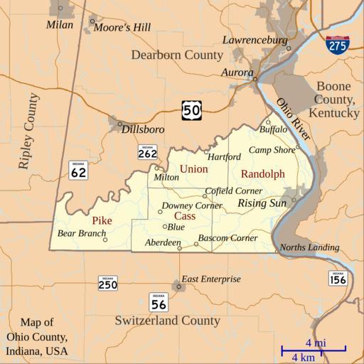 | Keywords: Map of Ohio County, Indiana.svg This is a map of Ohio County Indiana USA which shows settlements townships roads railroads and rivers My own work using freely-available shape data and custom-written MapScript applications 2011-12-03 Omnedon Maps of Ohio County Indiana Maps by User Omnedon |