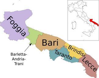| Keywords: Map of region of Apulia, Italy, with provinces-it.svg PUG Italian own Vonvikken 2010-08-04 100px Blank100px العربية100px Deutsch100px Ελληνικά100px Español100px Français100px ქართული100px Русский Valid SVG Inkscape Translation possible AttribSVG Map of region of Apulia Italy svg Vonvikken AttribSVG Italy map with regions svg Helix84 Vonvikken Maps of Apulia | ||||